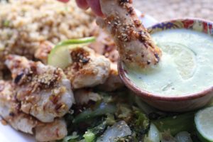 My little sous chef, or rather my taste tester of things that fall to the floor, approves of this recipe too! This recipe is fun for the kids (or grown-up kids) to dip in my Zesty Lemon Dressing; it makes it a little more gourmet with the dressing for us matured kids.✨